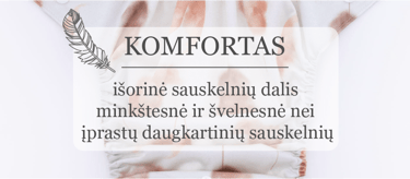 Tausojate vaikelio odą - sauskelnės pralaidžios orui, nėra plastiko, cheminių medžiagų ir kitų priedų.